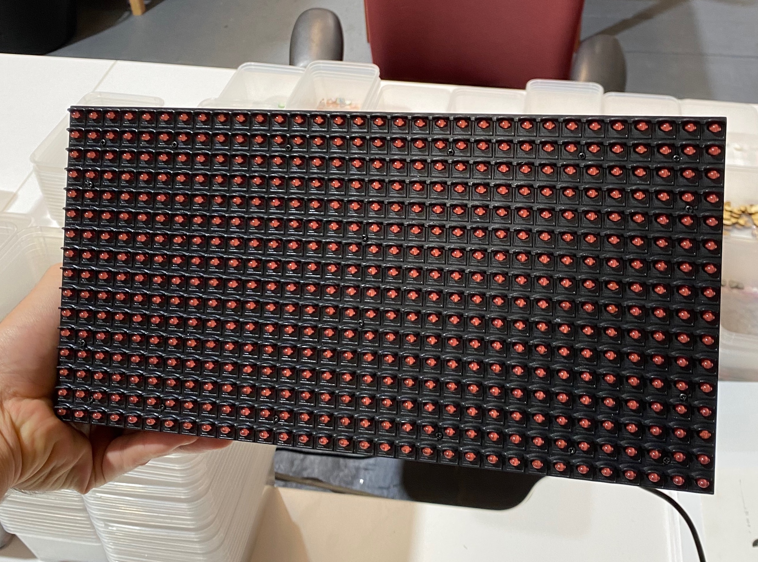 Secondly, how will the screen be set up? Thanks to previous knowledge of Arduino learnt from other Industrial design projects, it became the default option. The benefit of its simplicity and wide range of peripherals available afforded a cost effect hardware stack. After testing several display types, a LED matrix was chosen. This was due to a size-to-price performance as other display types such as a segment-display were cost prohibitive at larger sizes. Where visibility as a distance was a requirement.