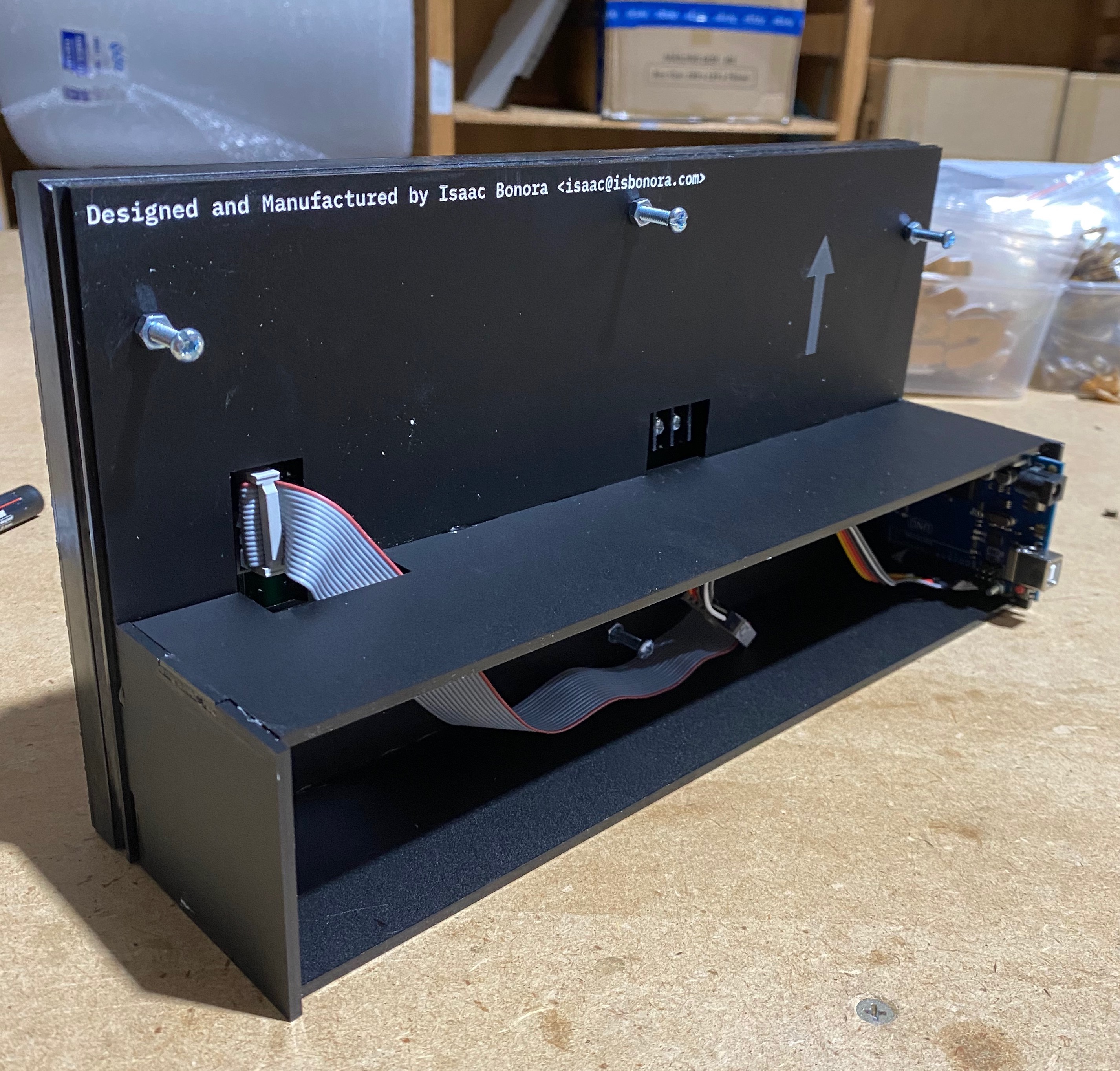 After some clean up, a quick laser cut case and a longer serial usb cable we ended up with a solution that is simple, and yet a powerful tool when trying to manage your time running both the lasers and performing other shop duties.